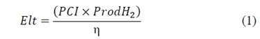 Where, Elt: energy required by the electrolyser (kWh); PCI: hydrogen lower heating value (kWh/kg); ProdH2 : H2 production (kg); 𝜂: electrolysis efficiency.