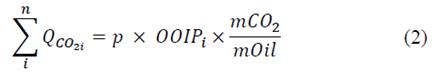 Where, QCO2i : CO2 storage capacity of the field i in million metric tonnes; p: percentage of the OOIP that can be additionally produce using CO2-EOR in %; OOIPi : original oil in place of the field i in million metric tonnes; mCO2/mOil: ratio of mass of CO2 stored per unit mass of oil produced.