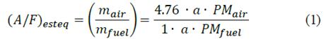 The combustion phenomena of compression ignition engines are pretty complex due to the inherent influence of different variables such as fuel properties, combustion chamber design, injection system, operating conditions, among others. The stoichiometric relation of air/fuel can be defined as follows [23]: