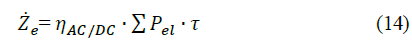 where H represents the hydrogen production capacity (in kg H2/s). Finally, the annualized electricity cost (Ze) can be calculated by relating the power consumption of the electrolyzer (Pel) through the service time, as shown in eq. (14) [15]: