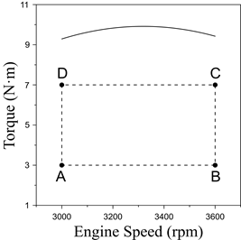 For the experimental tests, four modes of operation were established, as shown in Fig. 4. Each mode was strategically chosen to cover a large range of the engine operation area that further characterize the emissions levels and fuel consumption rate.