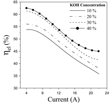 On the other hand, Fig. 8 displays the electrolyzer efficiency for different KOH concentrations.