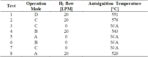 Based on the results, it can be verified that the autodetonation temperature remains below the limit condition for all the operation modes with hydrogen enrichment of 20 LPM.