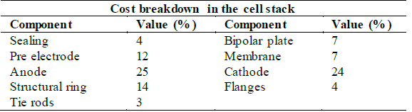 Since the electrolyzer stack overcomes the most significant cost-share, Table 6 displays the cost distribution for this element.