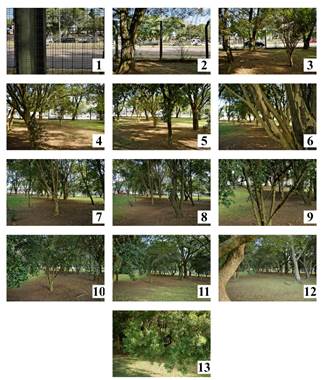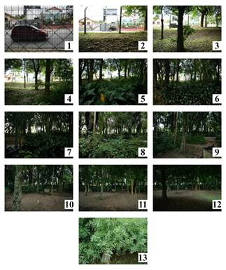 Location A (low vegetation density) showed a variation in the landscape visual quality value from 3.02 to 9.34. Photographs 1 to 5 obtained the LVQ classified as Bad (38.46%), Photographs 6 to 8 and 10 to 12 were classified as Average quality (46.15%), and Photographs 9 and 13 with Good quality (15.38%) (Fig.3). The low quantity of photographs classified as Good occurred because the site has low vegetation density in the Botanical Garden, however, the vegetation has a high landscape quality. Furthermore, in addition to the high vegetation value, another important feature for this location to have a low average LVQ value is the diversity of elements in the photographs and the absence of vegetation, which facilitated visualizing anthropic elements in the external areas of the park.