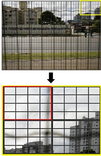 The photographs were taken between January 2 and March 19, 2017. The photographs in digital format were sized 9 x 13 cm, as recommended by Bobrowski et al. (2010), and grids with dimensions of 9 x 13 mm were allocated in each one, totaling 100 grids. In addition, 16 sub-grids were delimited within each grid, aiming to quantify the elements of the landscape in greater detail [6], totaling 1600 sub-grids per photograph (Fig.7).