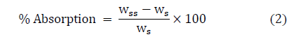 This laboratory analysis determines the increase in mass in the blocks submitted to immersion in water for 24 h. Initially, the block samples previously dried in an oven were weighed and immersed in a tank with water at room temperature (~20°C), as shown in Fig. 6b. Subsequently, at the end of the 24 h of immersion in water, the blocks were removed, and water excess was dried with a cloth and re-weighed (It is essential that the weighing of each specimen takes place within 300 s after being removed from the water) such as shown in Fig. 6a. According to the NTC 4205 standard procedure, the maximum final absorption values are 13% and 13.5% for indoor and outdoor use, respectively. These values are of equal magnitude for structural and non-structural use. According to his geometry, the main objective of this test is to calculate the increase in mass that the block obtains due to the porosity. The percentage of water absorption was calculated using Eq. 2 according to the guidelines of the NTC 4017 standard procedure [27], where: WS is the dry mass before immersion (g), and WSS is the wet mass after immersion (g).