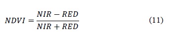 The NDVI is the vegetation index most used in urban land-cover studies since it allows differentiation of vegetal land-cover from other present land-cover classes [7]. Its calculation is established by the difference of reflectance in the infrared and red bands divided by their sum, as shown in eq. (11).