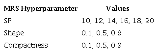 The optimization process of the MRS hyperparameters showed the importance of choosing their best possible combination. For example, fig. 9 shows the distribution of OA through the 54 combinations of hyperparameters, where it was found that the combinations with higher and lower OA were obtained with SP = 10, indicating that the mere fact of adjusting SP does not ensure the best possible segmentation [6,44].