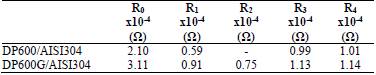The selection of the polarity to obtain the dissimilar welded joint was made considering the results of a previous research [13]. This study showed that polarity (+)DP600/(-)AISI304 presented the best mechanical properties and the highest load capacity, 33% higher than those obtained with polarity (-)DP600/(+)AISI304. Welded joints were obtained with the combinations DP600/AISI304 for non-galvanized steel and DP600G/AISI304 for galvanized ones.