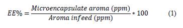 The encapsulation efficiency (EE), the concentration of aroma present in the microcapsules compared with the concentration of those initially used for drying, was calculated (Eq. 1) according to Rocha et al. [21]as follows: