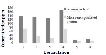 In the abovementioned studies, results varied regarding the encapsulation efficiency of the agents tested. This was most likely due to other parameters that influence on this method of drying. Such parameters are the different characteristics and quantities of the aroma compounds added to emulsion, ratio of the nucleus to the wall material and inlet and outlet air temperature in the spray dryer during drying Janiszewska et al. [38].