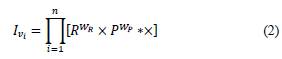 Similarmente como ocurre en la ec. (1) estos coeficientes toman valores, de manera arbitraria, en el rango (0, 1), considerando que la suma de los tres coeficientes debe ser estrictamente 1. El mínimo valor que puede tomar el Iv es 0, indicando que sobre la variable no existe impacto, y el máximo valor que puede tomar es 10, reflejando un impacto muy significativo sobre la variable en estudio. El efecto lo determinará el signo que arroje el resultado de las expresiones (1) y (2), bien sea negativo o positivo. Para esta investigación los valores seleccionados de los coeficientes fueron los siguientes: WRV = 0.3, WRG = 0.3 yWM = 0.4 [18]