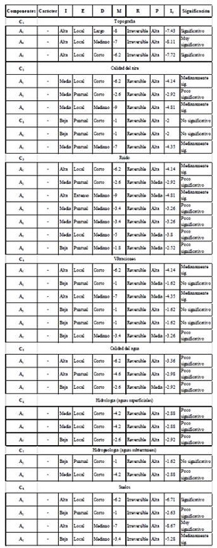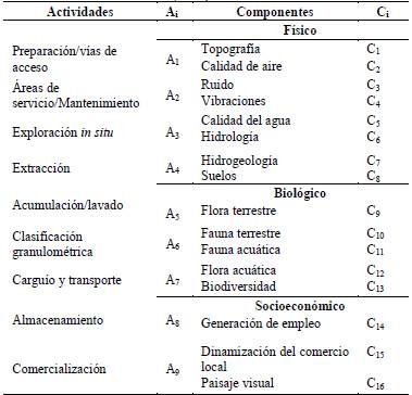 b) Posteriormente también se identificaron y codificaron 16 componentes ambientales presentes en el área de influencia de la cantera de San Luis de Alba (Tabla 3).