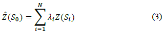Donde: Z(Si) es el valor medio en la ubicación i, λi hace referencia a una ponderación desconocida para el valor medio en la ubicación i, S0 corresponde a la ubicación de la predicción y N es la cantidad de valores medidos.