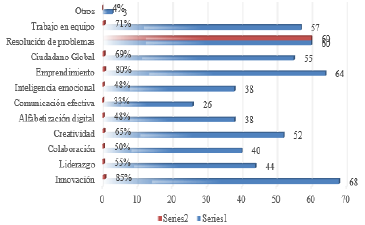 La mayoría está de acuerdo en que la innovación, resolución de problemas, emprendimiento, trabajo en equipo, creatividad y ser un ciudadano global son los principales elementos que se deben tener en cuenta para poder afrontar las exigencias que trae consigo la Industria 4.0. Por lo anterior, aparece la necesidad de que las instituciones de educación superior tengan profesores que formen a los estudiantes con enfoques es estas habilidades específicas (Fig. 20).