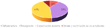 Pregunta catorce: ¿cuál considera que es la razón por la que no se incluye la robótica dentro del proceso educativo? Los encuestados consideran que la principal razón por la que no se incluye la robótica dentro de los pensum es por la poca formación que tienen los profesores en este tema. También por el presupuesto que requieren invertir las instituciones de educación superior, para lograr lo anterior. Aunque notoriamente se ve que los estudiantes están motivados por aprender a construir y programar robots, es necesario la formación de los docentes en robótica educativa y el interés tanto de las instituciones como de los profesores en educar a los estudiantes en las habilidades, destrezas, competencias y capacidades que necesitarán al enfrentarse a la Industria 4.0 (Fig. 26).