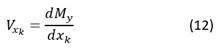 where: My is the moment around the y axis and Vxk is the shear force at a distance xk .