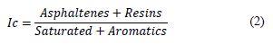 As to the Gaestel Index (Ic), which verifies the dispersion capacity of maltenes (saturated, aromatic and resins) against asphaltenes, increasing the Ic, the asphaltene can precipitate. The Ic can be seen in Table 2 and in Fig. 1.