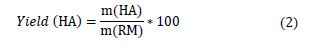 Mass of dried HA: m(HA), g (the precipitate of the acid extraction, for gravimetric methods).The extraction yield of FA and HA is calculated by the next expressions:
