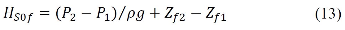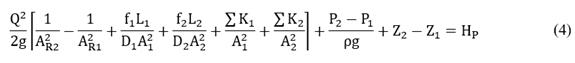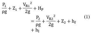 where distributed and minor energy losses are and respectively, and the energy per unit weight added by the pump is HP, is the reservoir pressure and ρ is the fluid density.