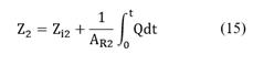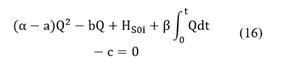 Combining eqs. (7), (12)-(15) and defining β = 1/AR2 + 1/AR1 results in HS0 = HS0i + β∫0t Qdt. Substituting into Eq. (9) yields