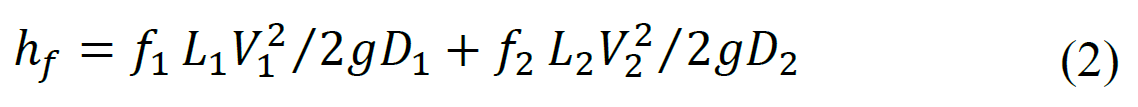 Where f1 and f2 are the friction factors of the tubes, L1 and L2 are the total tube lengths, D1 and D2 are their diameters and K1 and K2 are the loss coefficients. Finally, V1 and V2 are the fluid velocities in the tubes, not to be confused with the free surfaces’ velocities, VR1 and VR2.