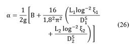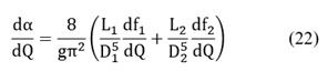 We initially consider f1, f2, K1 and K2 to be constants in Eq. (17). For f1 and f2 this is exact in the complete turbulence region of the Moody chart and is a good approximation in the rightmost part of the transition zone. The K coefficients of the minor losses are often considered constant in the literature. Thus, Eq. (17) yields