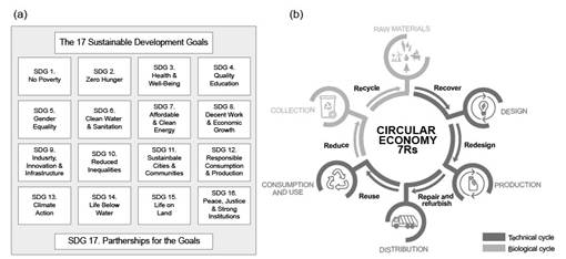 The circular economy (CE) is an alternative to the economic model of linear extraction, manufacturing, and disposal because it states that production systems must be integrated into nature's cyclical system, in which nothing is wasted [11]. Waste management, resource scarcity, unsustainable food systems, biodiversity loss, and climate change are among the global challenges addressed by CE [12].