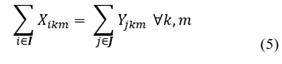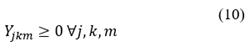 Yjkm = Quantity of waste type k to be sent from the collection center for final disposal alternative type j in period type m (kg)