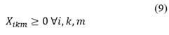 Xikm = Quantity of waste type k to be collected and sent from each farm type i to the collection center in period type m (kg).