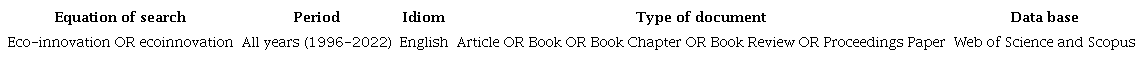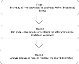 In the first phase, the search is carried out in the databases with the keyword eco-innovation, compiling the files in *.cvs, *.rif, and *.bib formats from the WoS and Scopus databases, (Table 1). The databases obtained are integrated for analysis in the Tableau, Sci-Mat y VOSviewer software proposed for this study which one. For this reason, it is necessary to integrate all the files into the next phase.