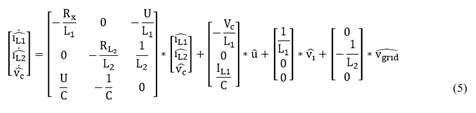 Modeling the circuit for each of its operating intervals, the expressions for the voltage in the input inductance, the current in the output capacitor and the voltage in the output inductance are obtained. Subsequently, applying the balance of volts per second and amps per second, the differential equations that govern the behavior of the circuit are also obtained, and the respective representation in state space is shown below in eq. (5):