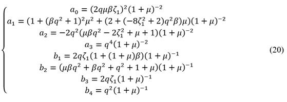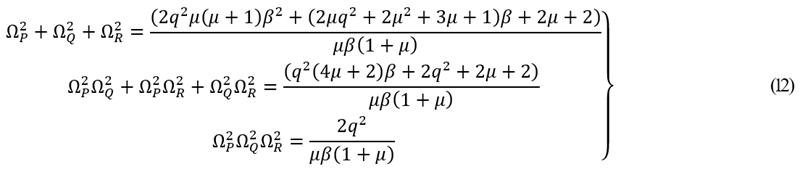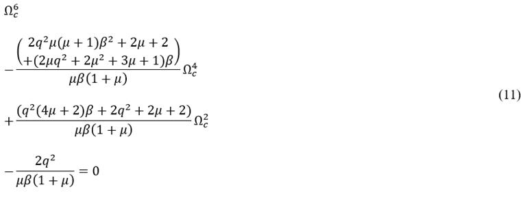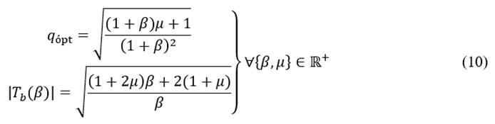 , the biquadratic equations of eq. (9) yield positive real roots that are generally well known in the literature as dynamic system’s invariant frequencies [26]. The fixed-point technique holds that vibration amplitudes yielded at the transmissibility FRF’s invariant frequencies must be equal. To achieve this target, it is necessary to apply Vieta’s theorem to the set of equations of eq. (9). This leads to the calibration of the invariant frequencies by means of the optimal variable q which is given by the following mathematical expression.