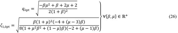 and the optimal variable qc,ópt can be determined by combining the set of equations of eq. (12) together with that given by (13). By performing this, the following are yielded.