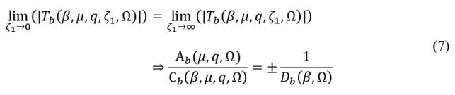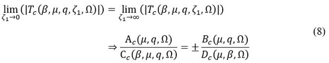 Considering the plus sign into eq. (7), the trivial solution for the dimensionless variable q is yielded. While the minus sign yields the transmissibility FRF’s invariant frequencies, see the first equation of the set of eq. (9). Additionally, these invariant frequencies can also be expressed in terms of the tuning magnitude |Tb |, as described by the second equation of eq. (9).