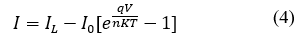 Where IL is the light current, so its effect on the characteristics of the current-voltage graph can be analyzed by the eq. (4):
