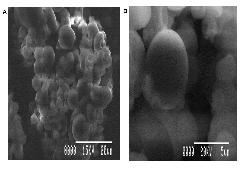Photomicrographs were obtained in a JSM-6060 scanning electron microscope (Japan), at 3000X magnification, in order to most properly assess the morphological appearance of the dried product. Particles were covered with gold and observed under high-vacuum conditions at an acceleration voltage of 10 kV.