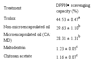 Keywords: antioxidant capacity, chitosan acetate, maltodextrin, microencapsulation, shark liver oil pool, spray-drying.