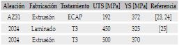 A nivel mecánico, las aleaciones de magnesio que se han venido desarrollando logran alcanzar esfuerzos de cedencia en un intervalo entre 160 MPa y 320 MPa empleando diferentes tratamientos térmicos diseñados para mejorar o modificar las propiedades mecánicas de las piezas o adicionando nuevos elementos de aleación que le confieren al material base un incremento de sus propiedades 15,16,17,18. Entretanto, las aleaciones de aluminio más empleadas en el campo aeronáutico pueden llegar a esfuerzos de cedencia en un rango entre 240 MPa y 570 MPa, dependiendo de los tratamientos térmicos aplicados y de los elementos aleantes contenidos en función de la aplicación para la cual se desee emplear la aleación de aluminio 19.