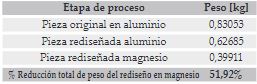Con base en los diagramas de esfuerzo que se obtuvieron bajo la acción de las cargas estimadas, se llevaron a cabo los análisis de las zonas de concentración de esfuerzos. Seguidamente, se analizaron los diagramas de factor de seguridad para evaluar si las piezas soportarían las cargas críticas de operación si se fabricaran directamente en la aleación de magnesio propuesta. Cuando el factor de seguridad no superaba un valor mínimo de 1.5 en algún punto de la geometría, se consideró que la pieza no era apta para su fabricación directa en aleaciones de magnesio sin antes rediseñarla, a fin de reducir los niveles de esfuerzo y mitigar las zonas de concentración de esfuerzos. Se repitió el proceso de simulación para la geometría rediseñada y se evaluaron nuevamente los diagramas obtenidos y el cambio de peso de la parte cuando se comprobaba que la utilización de la aleación de magnesio AZ31 como material de fabricación era factible.