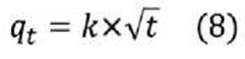 Donde k (mmol g-1 -s1/2) es la constante de velocidad de difusión intrapartícula.