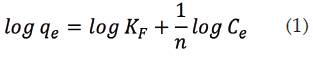 La ecuación de isoterma de equilibrio de Freundlich es una ecuación empírica utilizada para la descripción de la adsorción de múltiples capas con la interacción entre las moléculas adsorbidas (12), la cual se presenta en la ecuación 1.