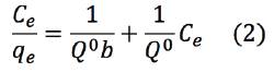 La isoterma de adsorción de Langmuir (13) describe la superficie como homogénea asumiendo que todos los sitios de adsorción tienen igual afinidad con el absorbato y que la adsorción en un punto no afecta la adsorción en el punto adyacente. Se presenta en la ecuación 2.