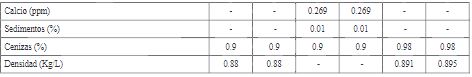 Los resultados respecto a la caracterización de los acei tes usados se muestran en la tabla 2.
