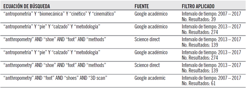 ABSTRACT: The increasing production of footwear and competitiveness has led the colombian businessmen to manufacture shoes with added value. To achieve this, the concepts of ergonomics and comfort play a significant role. To this effect, it is necessary to know the foot dimensions of the target audiences to design the lasts, sole pads and soles that fit correctly. Anthropometry defines these dimensions and the associated technology is useful to manufacture shoes. Nevertheless, colombian manufacturers use the dimensions provided by american and european standards. It calls for an evaluation of the state of the characterization process of the foot globally and locally, and the Disponible in technologies to perform it. The literature review was performed through exhaustive search in academic databases, where keywords and search formulas were identified. The information was classified according to the publication date, the methodology used in each work, the scientific rigor and the depth of the analysis. The review led to identify that the sole pressure analysis complement the anthropometric studies in the footwear development, 3D technology is currently the most used technology for anthropometric studies and that in Colombia, as in most latinamerican countries, the antropometric studies are few and outdated.