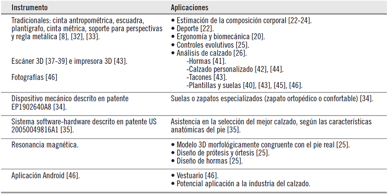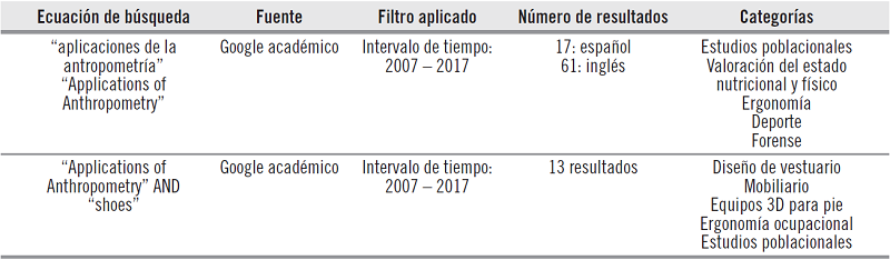 Se eligieron las publicaciones con información concreta sobre aplicaciones de la antropometría, dando prioridad a aquellas que involucren información relevante relacionada con el calzado. Los hallazgos son: