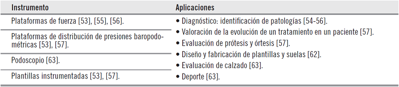 La baropodometría es ampliamente utilizada para identificar diversas patologías, tanto en los pies, como en la postura y el equilibrio 54-56. Además de implementarse como medio de diagnóstico, también se recurre a ella en la valoración de la evolución del tratamiento en un paciente o para el diseño y evaluación de órtesis 56.