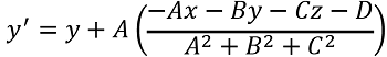 En las ecuaciones anteriores P es el punto a proyectar, Pi es el plano definido por las constantes A, B, C y D, y x’, y’ y z’ son las coordenadas del nuevo punto proyectado.