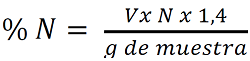 Donde V es volumen de ácido sulfúrico gastado en la valoración, N la normalidad del ácido, siendo el % proteínas = %N x 5,75.
